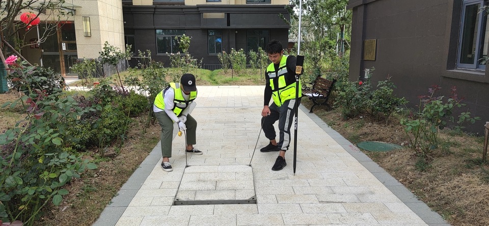 在烈日下的项目现场,俄罗斯专享会测绘人员正在通过物探的方法进行着管网测绘作业,物探的主要内容包括查清管网的连接关系、材质、管径、埋深等,最后进行GPS定位并绘制“管网大数据图”为未来管网智慧化运营维护提供数据保障。